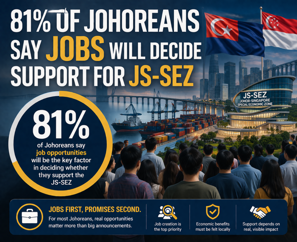 Central Force International’s latest public sentiment study released ahead of the anticipated 30 March 2026 JS-SEZ Master Plan announcement, shows that while support for the Johor Singapore Special Economic Zone remains broadly positive, it hinges on whether development translates into tangible gains for local residents, especially with regard to employment opportunities and housing affordability.