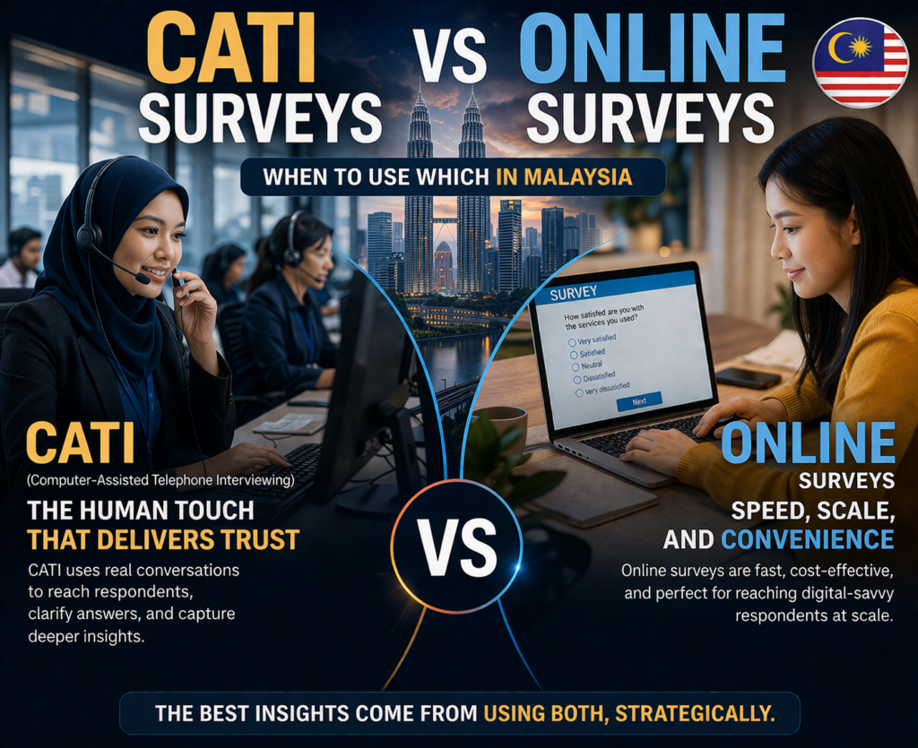 CATI and online surveys are not competing methods; they are complementary tools. In Malaysia’s diverse research environment, the ability to choose the right method—or combine them effectively—often determines whether a study delivers insight or just data.